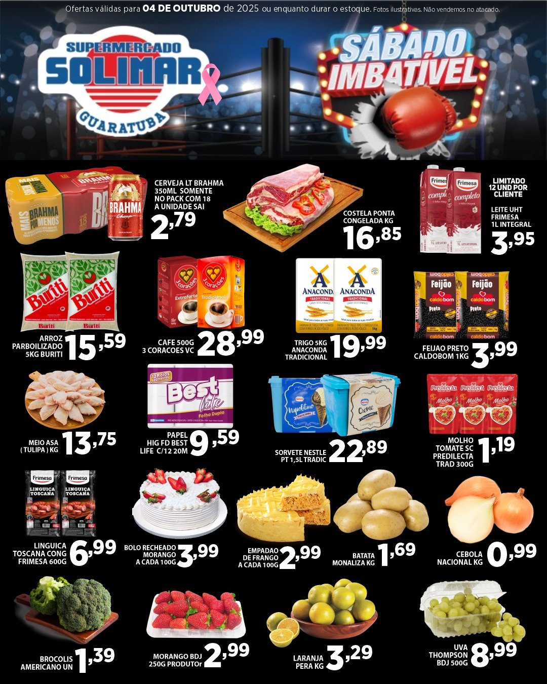 Neste sábado (04), a partir das 8h, o Supermercado Solimar, como de costume, oferece produtos da mais alta qualidade, diferenciados, com ofertas imbatíveis.